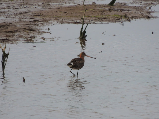 A walk around the drying out realignment area was not very productive with the only waders being 60 Redshanks, 3 Greenshanks, 2 Oystercatchers, a Common Sandpiper, 3 Ruffs, 3 Little Stints and 8 Dunlin. Other counts included 10 Little Egrets, 3 Grey Herons, 4 Cormorants, 6 Little Grebes, 4 Teal, 2 Shelducks, ca. 15 Kestrels, a Hobby, 4 Common Buzzards and 2 Marsh Harriers.